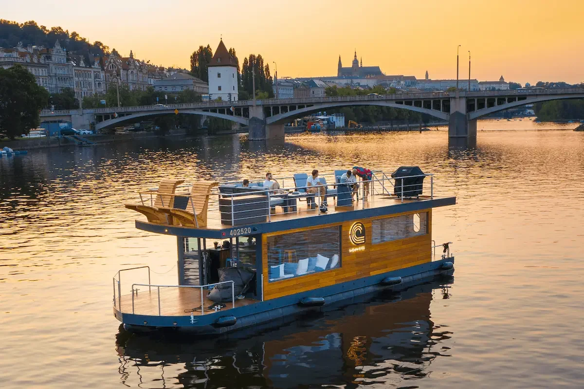Enjoy premium service, ice-cold drinks, and unforgettable vibes as you glide through the heart of Prague on this elegant houseboat.